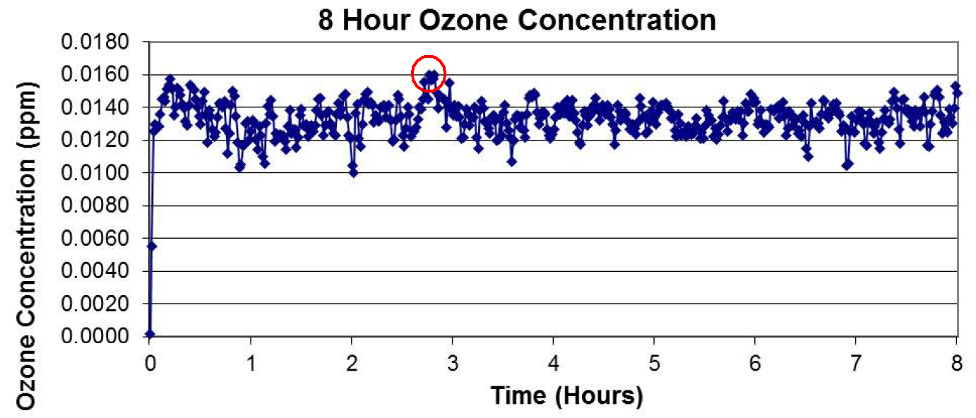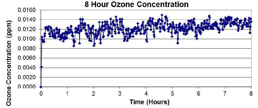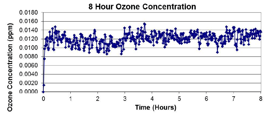Conclusions: Wellisair has been found to meet the criteria with a maximum emission of 0,016ppm not exceeding the allowed concentration of 0.050ppm. Furthermore, a second Wellisair was not required to be tested according to UL867, as the first sample’s maximum emissions were less than 0,030ppm, which satisfies the exception in the section 40.1.1.