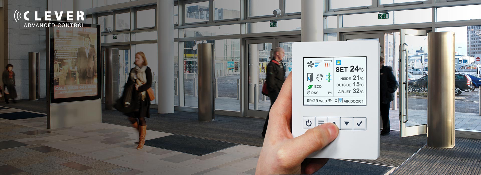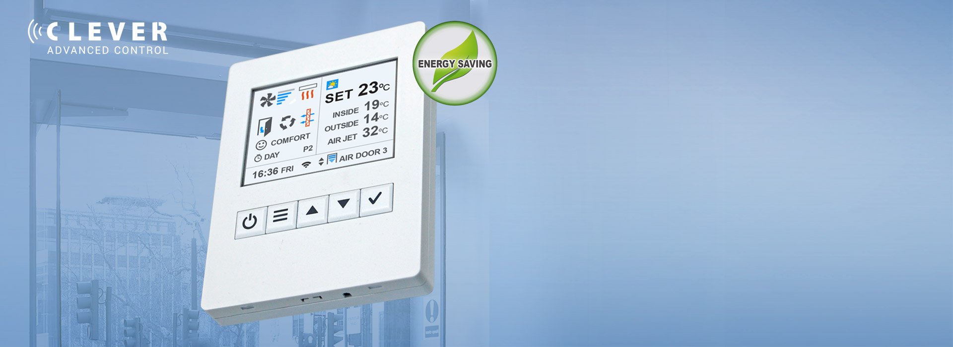 Regulación proactiva inteligenteCLEVER optimiza la ventilación y calefacción para crear una barrera de aire eficiente y una protección climática óptima